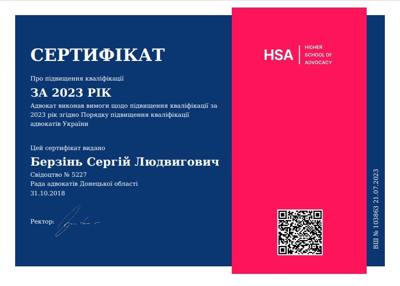 Адвокат Украины (свидетельство о праве на занятие адвокатской деятельностью ДН № 5227), член Национальной ассоциации адвокатов Украины, региональный представитель Молодежного комитета “UNBA NextGen” в Донецкой области, работаю в сфере права с 2010 года. Мой офис находится в центре города Краматорск.
